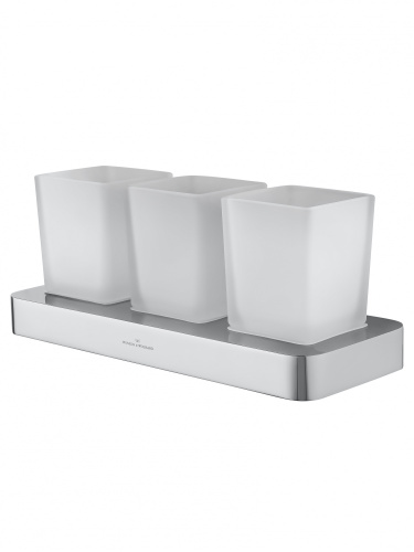 Три стакана для зубных щеток с держателем WONZON & WOGHAND LOTTE, Хром (WW-8338)