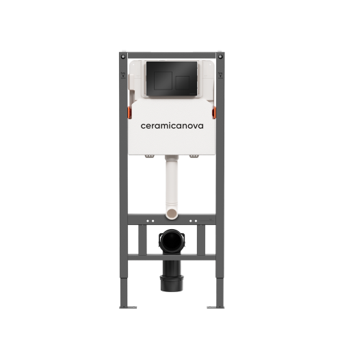 Система инсталляции для унитазов CERAMICANOVA Balance с кнопкой смыва Square, цвет черный матовый, с креплениями, арт. CN121002MB