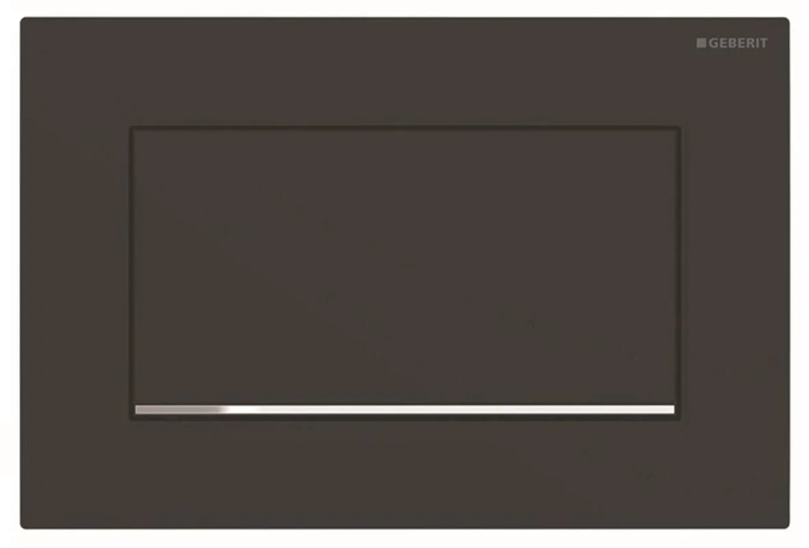 Смывная клавиша Geberit Sigma30 115.893.14.1 одинарный смыв. Панель и клавиши: черный матовый лак легко очищающееся покрытие. Декоративные полоски: глянцевый хром.