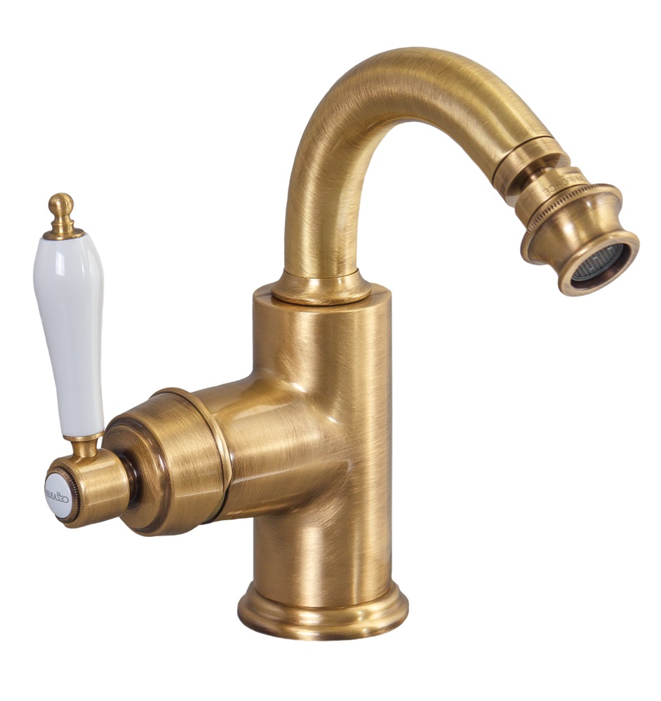 APHRODITE-BS2-02-Bi Смеситель для биде с донным клапаном, исполнение бронза, ручки белые