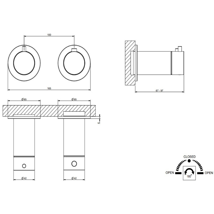 GESSI 316 смеситель для душа встраиваемый, термостатический, с переключателем на 2 положения, внешняя часть, цвет Steel Brushed