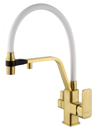 Смеситель для кухни с гибким изливом и подключением фильтра WONZON & WOGHAND, Брашированное золото (WW-88458013-BG(MW)) - Gidratop.ru изображение