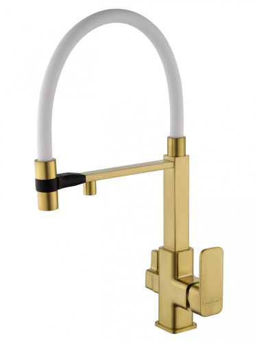 Смеситель для кухни с гибким изливом и подключением фильтра WONZON & WOGHAND, Брашированное золото