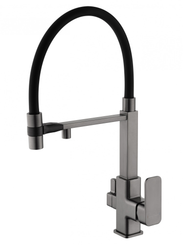 Смеситель для кухни с гибким изливом и подключением фильтра WONZON & WOGHAND, Темный графит (WW-88458012-BGM )