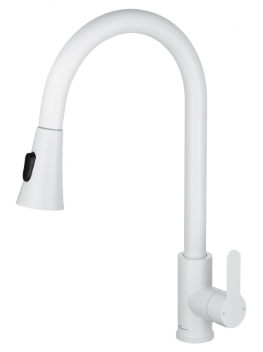 Смеситель для кухни с выдвижным изливом WONZON & WOGHAND, Белый матовый (WW-121E201L-MW)