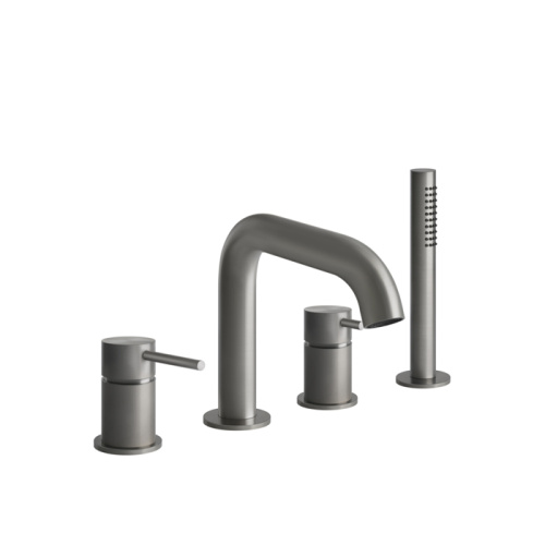 GESSI 316 смеситель для ванны на 4 отверстия, с переключателем, изливом и шлангом 1,50 м, цвет: steel brushed