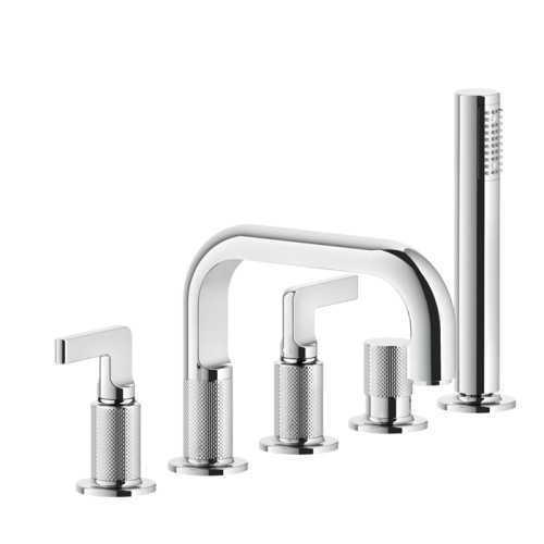 GESSI INCISO смеситель для ванны на 5 отверстий с изливом, переключателем, ручным душем и шлангом 1,50 м, цвет: хром