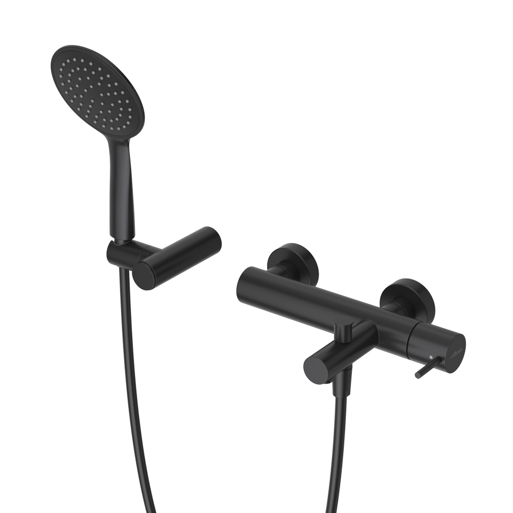 LEAF-VD-L-NOP Смеситель для ванны и душа однорычажный в комплекте с ручным душем, шлангом и держателем, исполнение Чёрный матовый