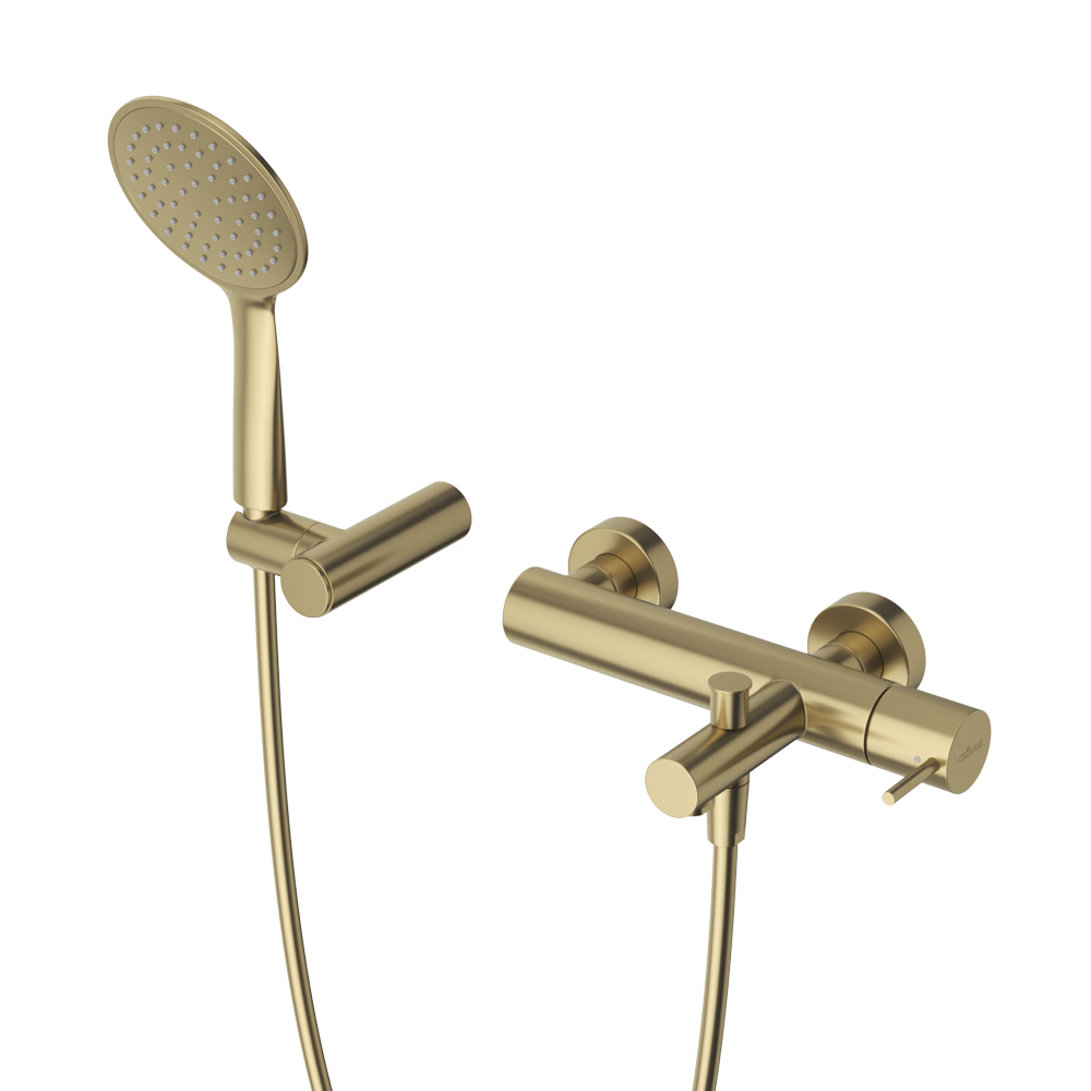LEAF-VD-L-SR Смеситель для ванны и душа однорычажный в комплекте с ручным душем, шлангом и держателем, исполнение Sunrise