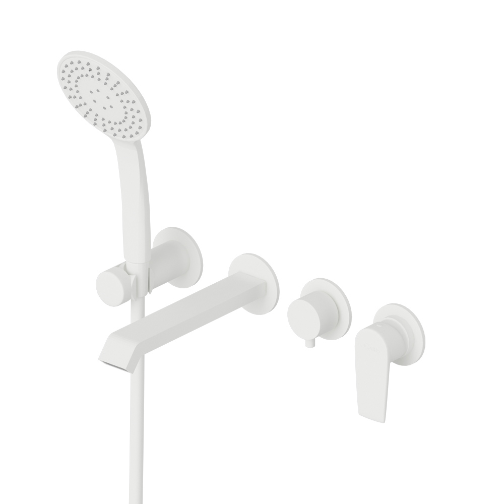 NAUTIC-VDM3-BIO Встраиваемый смеситель для ванны и душа однорычажный с поворотным переключателем на 3 выхода, в комплекте с ручным душем, исполнение Белый матовый