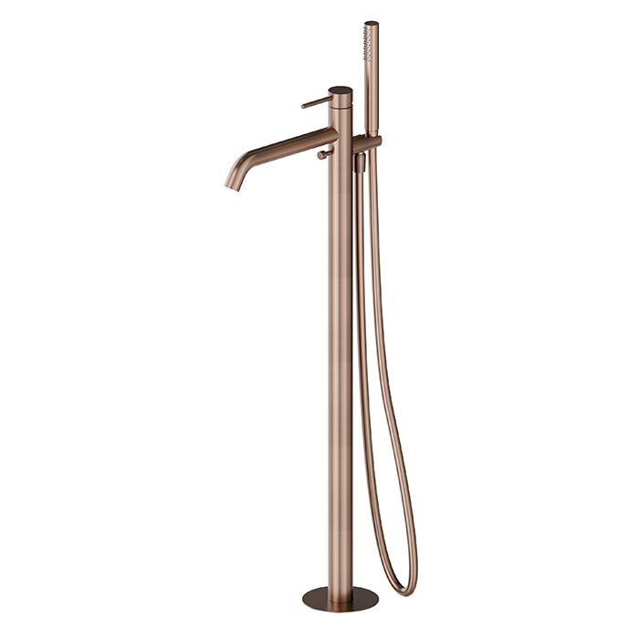 Newform X-STEEL 316 Смеситель для ванны напольный, излив 243 мм, в компл: руч. душ, шланг, без встр. части, (для 27819) цвет: PVD Brushed copper bronz