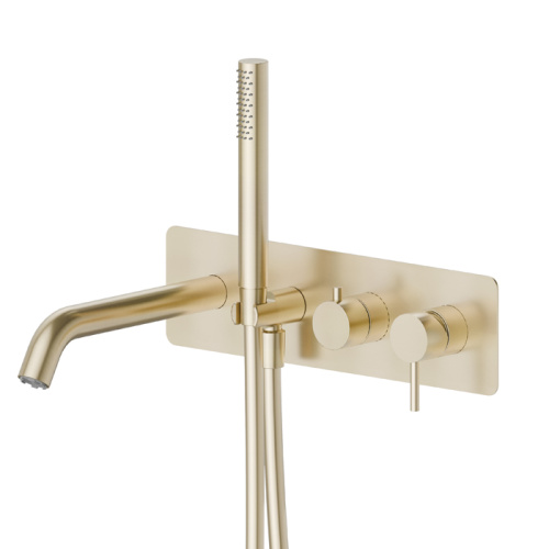 Newform X-STEEL 316 Смеситель для ванны встраиваемый с ручным душем, излив 231 мм, внешняя часть , цвет: PVD Brushed pale gold