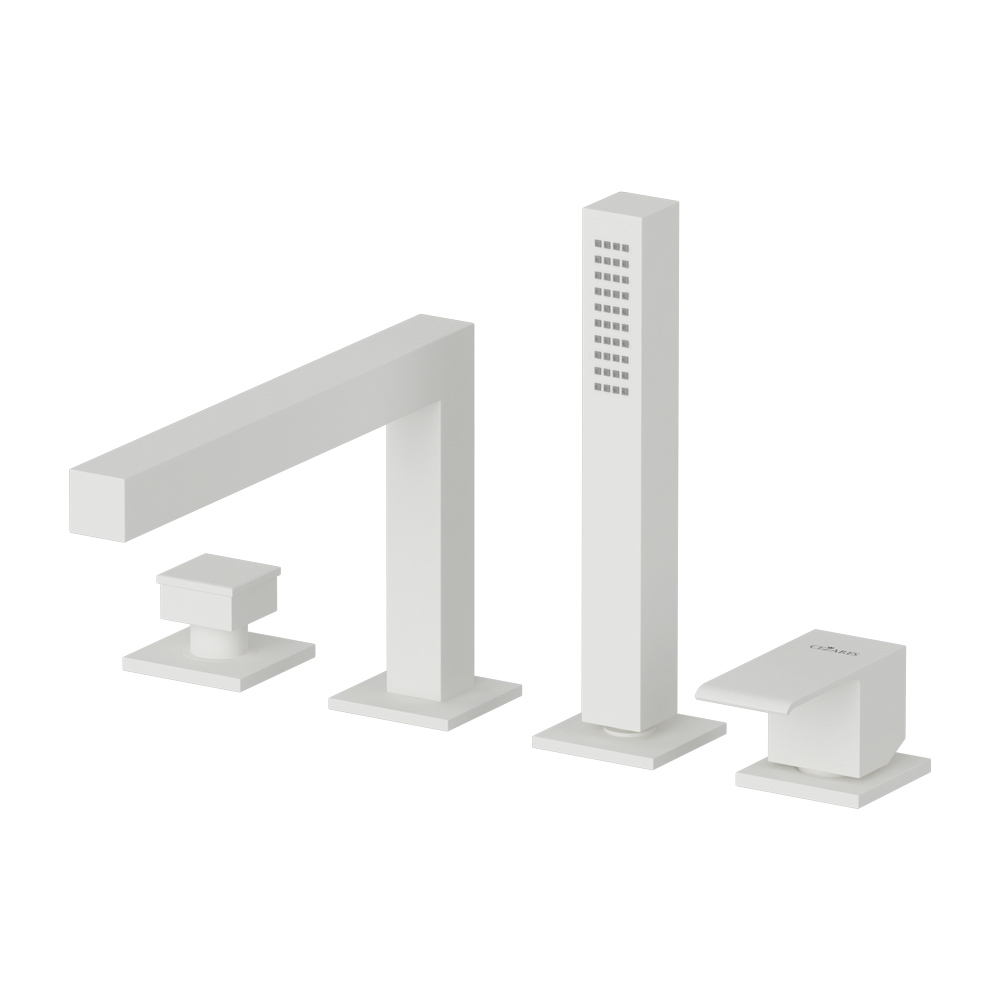 PORTA-BVDM4-BIO смеситель на борт ванны с выдвижным душем и переключателем, исполнение белый матовый