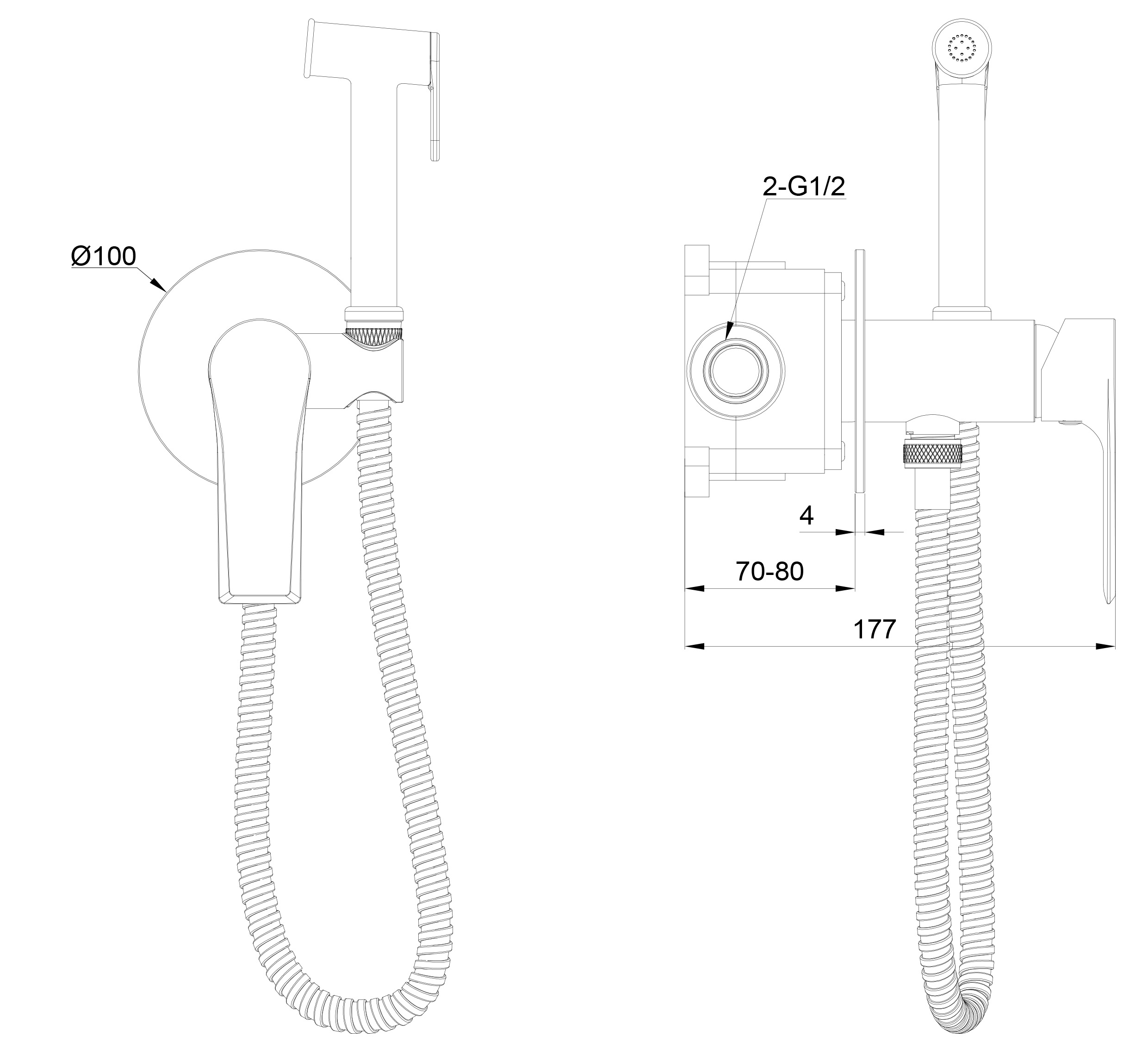 Смеситель / Душевой шланг / Держатель для душа / Лейка гигиенического душа / Монтажный комплект