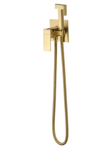 Смеситель с гигиеническим душем встраиваемый WONZON & WOGHAND CUBE, Брашированное золото (WW-88829016-BG) - Gidratop.ru изображение