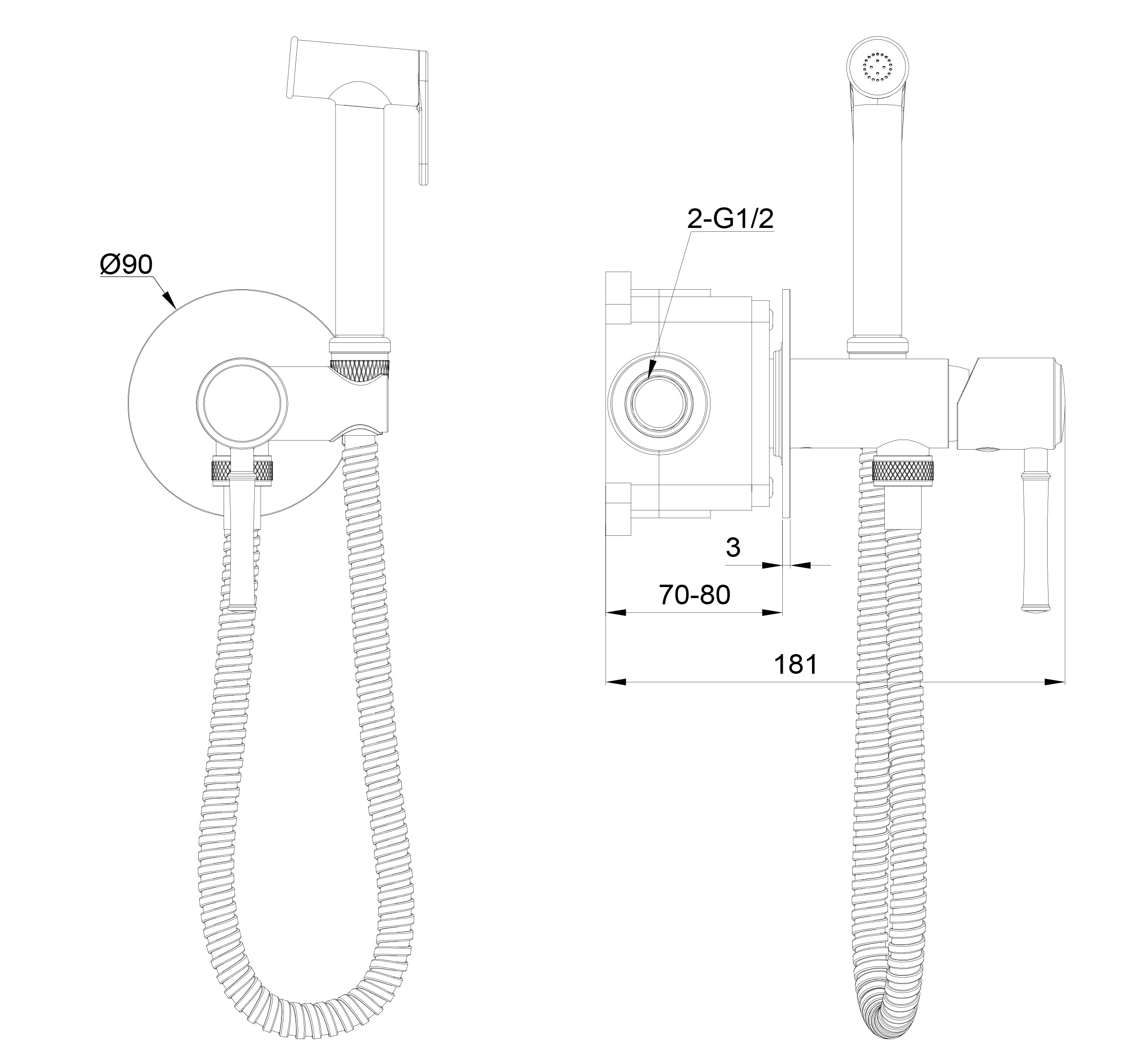 Смеситель / Душевой шланг / Держатель для душа / Лейка гигиенического душа / Монтажный комплект