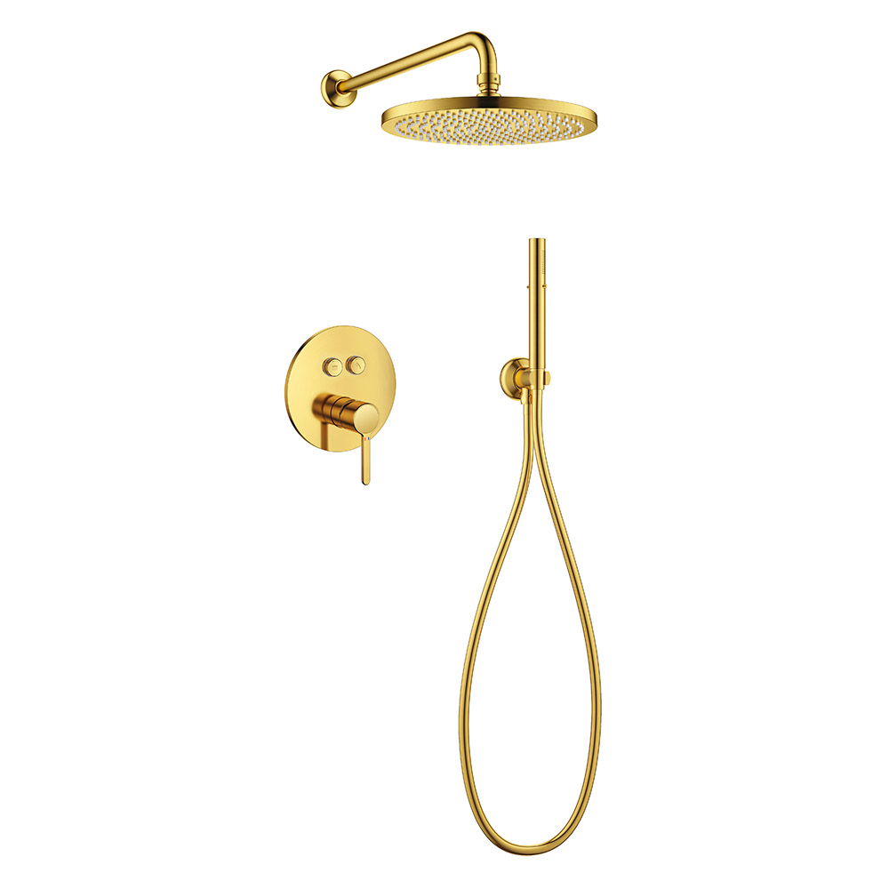 ECO-DSET-BORO Душевой набор (встраиваемый смеситель с кнопочным управлением, верхний душш диаметр 25 см, ручной душ со шлангом, штуцером и держателем), брашированное золото