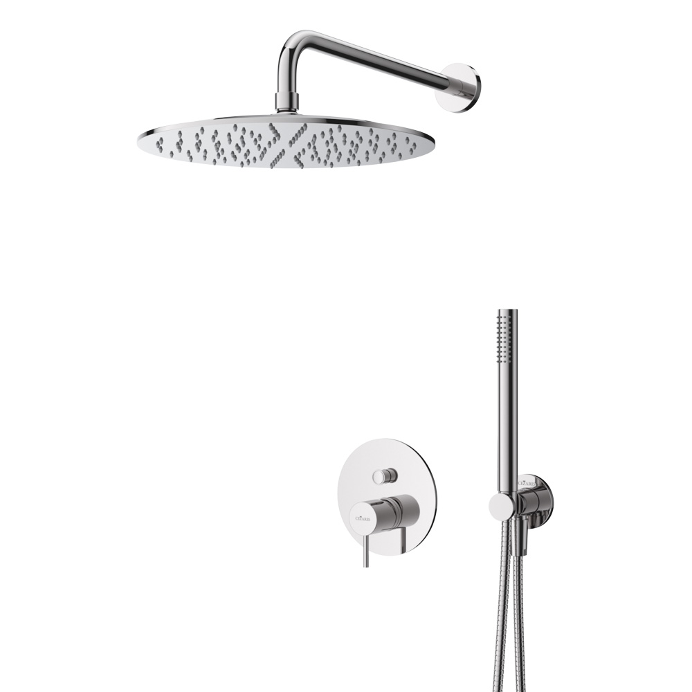 LEAF-DSIP-30-L-01 Душевая система со встраиваемым смесителем, верхним душем 30 см с кронштейном и ручным душем со штуцером, держателем и шлангом, исполнение хром
