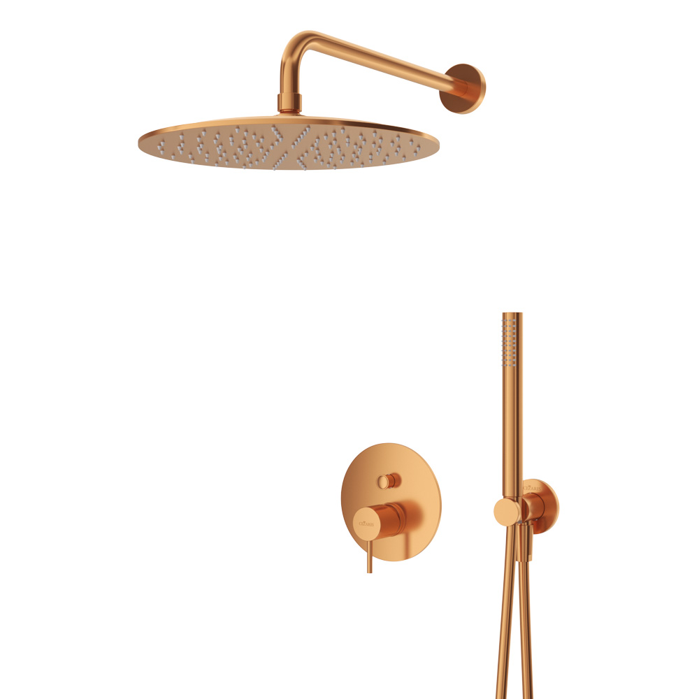 LEAF-DSIP-30-L-SS Душевая система с дивиатором для верхнего и ручного душа, верхний душ из стены 30 см, исполнение Sunset