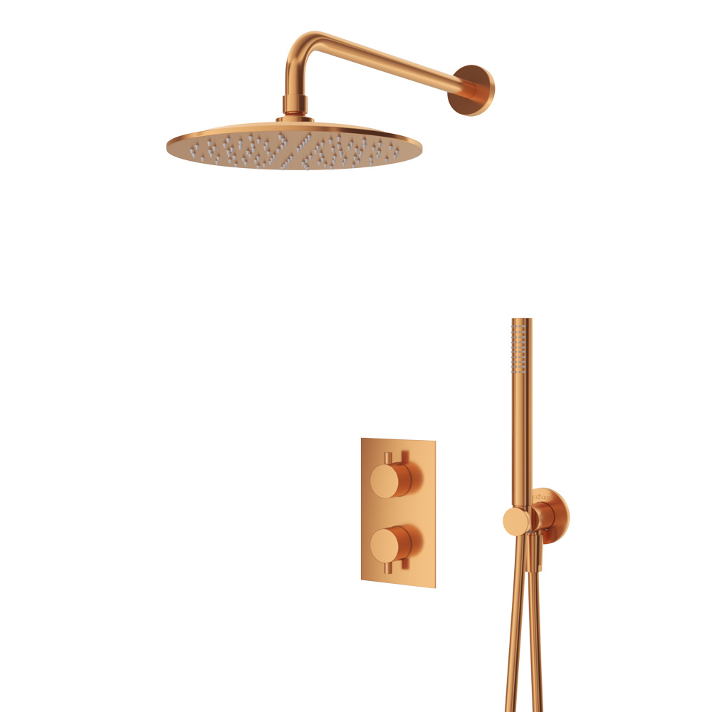 LEAF-DSIP-T-25-SS Душевая система термостатическая с дивиатором для верхнего и ручного душа, верхний душ из стены 25 см, исполнение Sunset