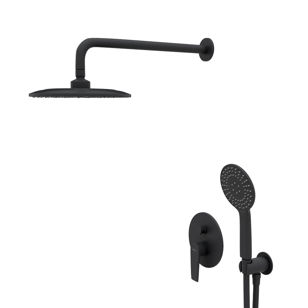 NAUTIC-DSIP-NOP Душевая система с переключателем для верхнего и ручного душа, верхний душ из стены, диаметр 25 см, верхняя лейка металл, исполнение Чёрный матовый